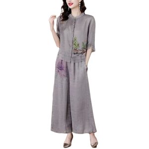 ROYALBELLE 여성 우아한 린넨 자수 상하세트