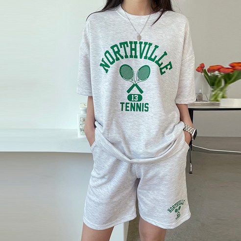 - 오버핏 프린팅 티셔츠 + 4부 반바지 세트 아이템!