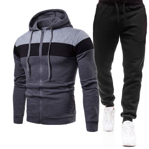- 기본 스타일의 기모 배색 트레이닝복 세트입니다