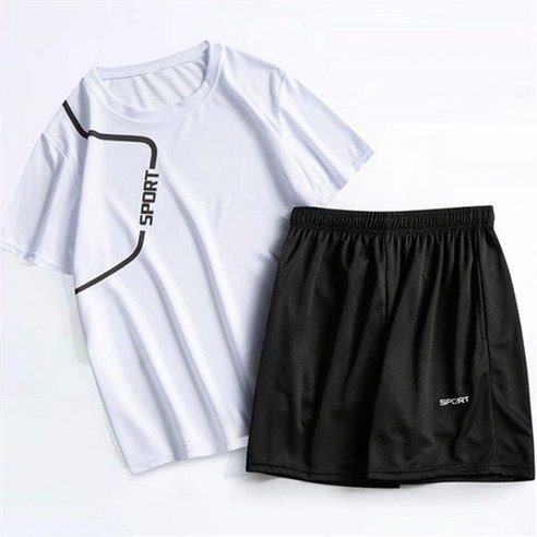 • 부드럽고 시원한 에어쿨링 소재를 사용하여 땀배출에 뛰어난 반팔 스포츠 트레이닝 세트입니다.