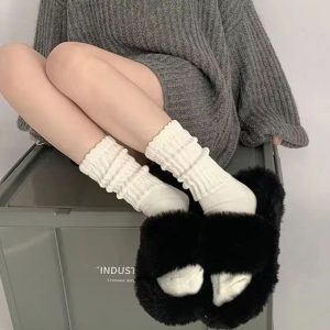 더모더니크 여성용 골지 주름 중목 양말