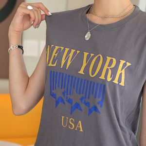 데일로엔 여성용 심플 레터링 U넥 반팔 티셔츠